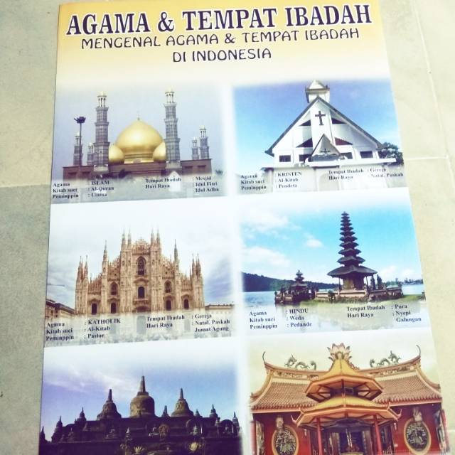Terdapat 6 agama serta tempat ibadahnya . Tempat ibadah agama di indonesia · 1. Masjid raya baiturrahman banda aceh, · masjid raya pekanbaru,; Poster ini dibuat agar masyarakat umum dapat mengenal dan memahami tempat ibadah setiap agama yang ada di indonesia. 6 macam tempat ibadah agama di indonesia ; Tempat ibadah berbagai agama yang ada di indonesia memiliki desain bangunan yang indah untuk jadi inspirasi anda. Kristen protestan (gereja) · 3. Tempat ibadah bagi penganut agama islam yaitu masjid dengan kitab suci al quran. Pelajari nama tempat ibadah konghucu . Kristen katolik (gereja) · 4. Hari raya bagi penganut agama islam yaitu hari raya idul fitri . Indonesia kaya akan keberagaman, termasuk keyakinan. Di indonesia, ada 6 agama yang diakui negara secara resmi, yaitu islam, kristen, katholik, hindu, budha, dan konghucu.